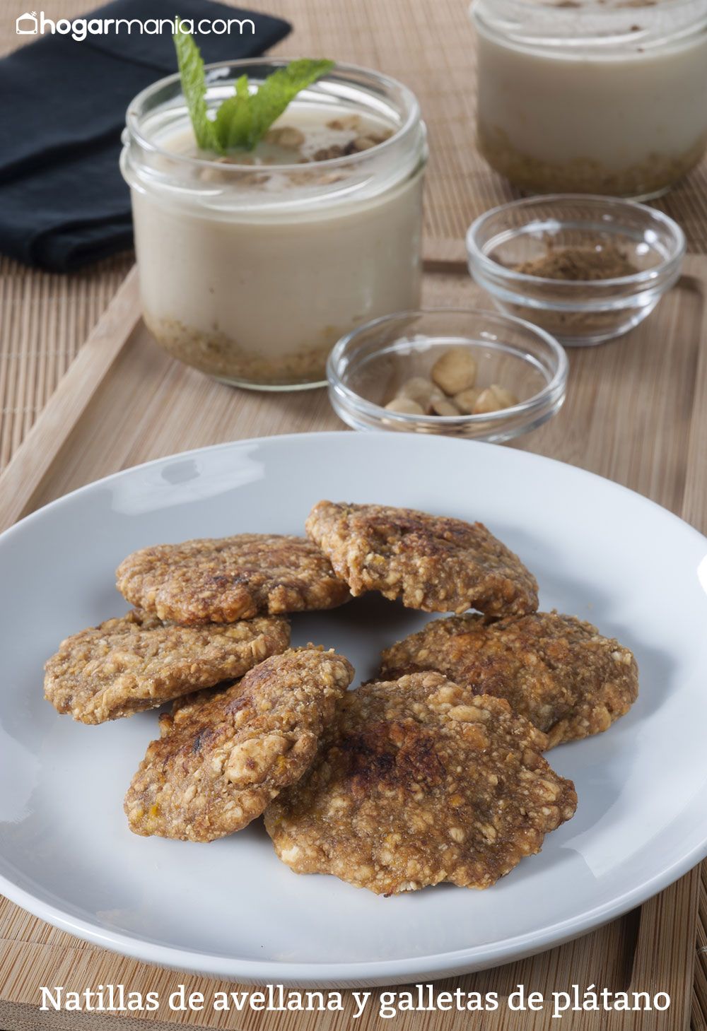 Espolvorea las natillas con una pizca de canela en polvo. Decora con unas avellanas y acompaña con las galletas de plátano. Sirve.